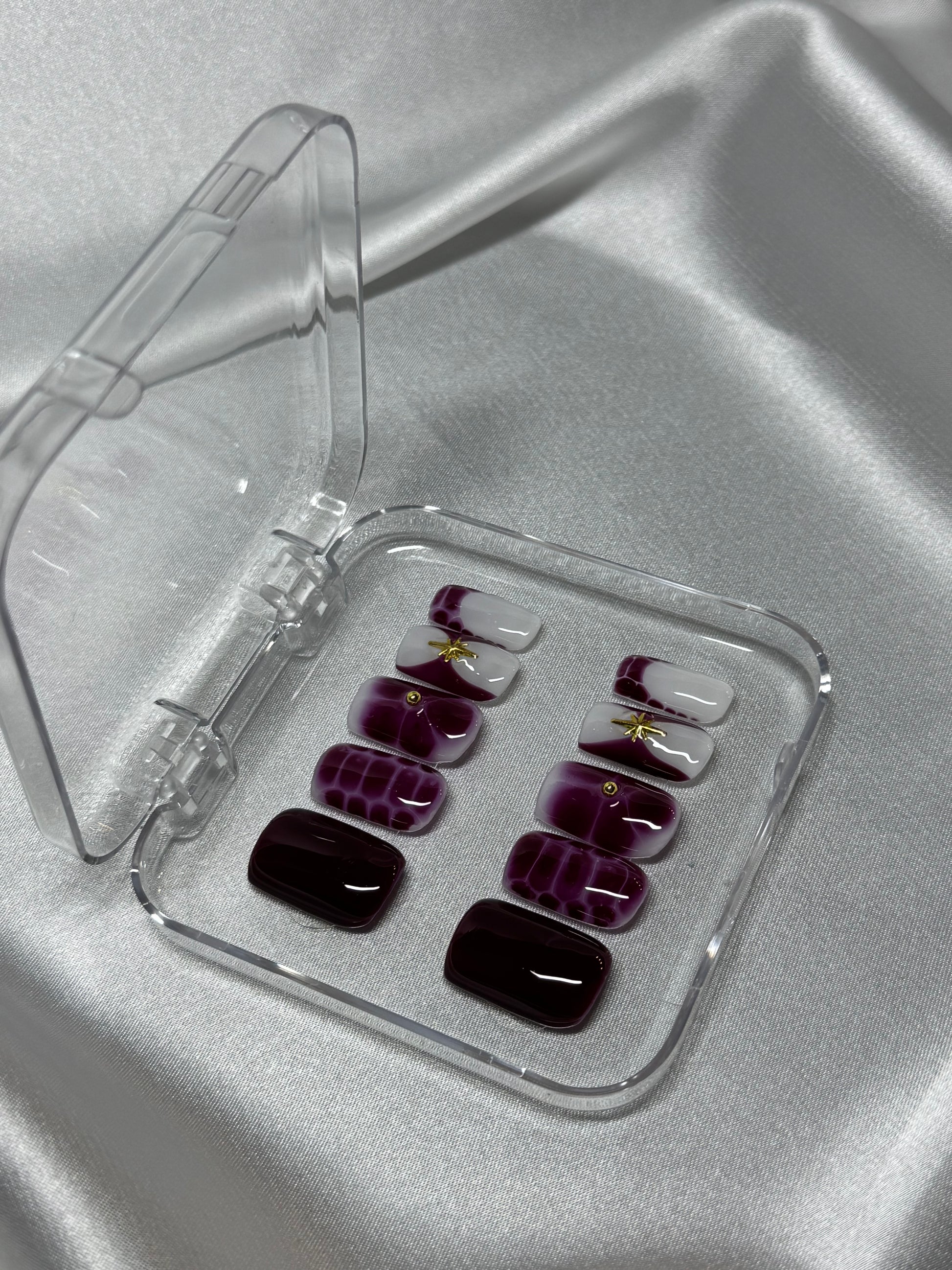 Each nail kit comes with a buffer, file, cuticle pusher, alcohol pad, nail glue, and instructions.