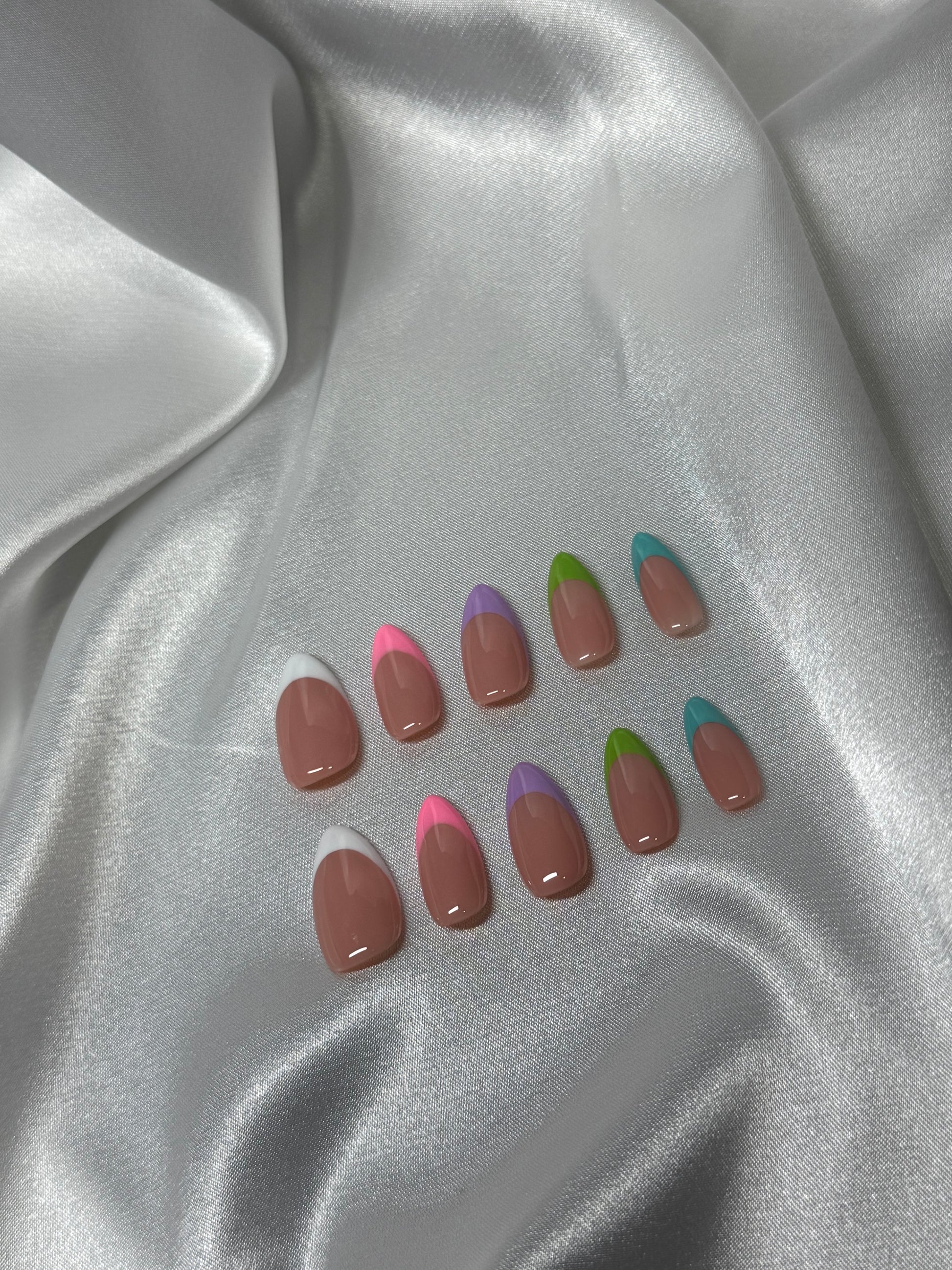 Each nail kit comes with a buffer, file, cuticle pusher, alcohol pad, nail glue, and instructions.